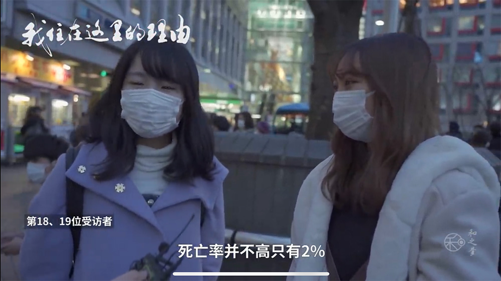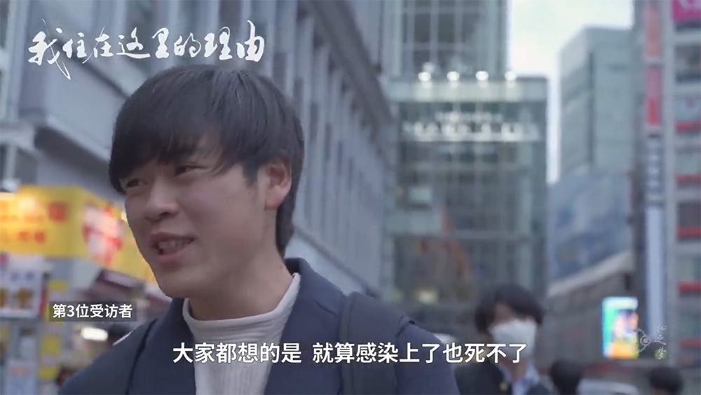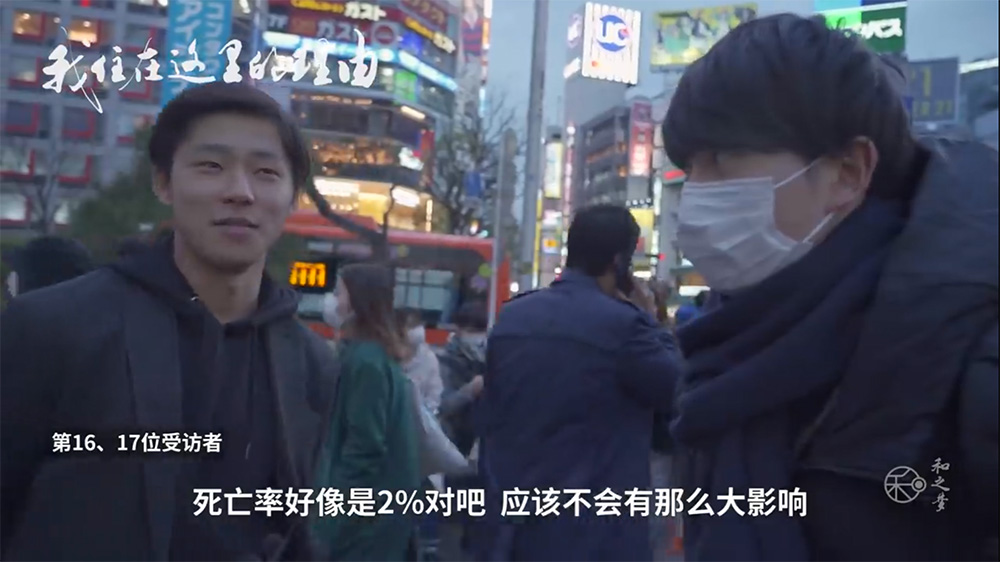 有年輕人稱會被傳染的人就是會被傳染,不會的就是不會,十分佛系。亦有日本人反而擔心找工作,因為本來在三月舉行的招聘活動受武漢肺炎影響而取消。亦有不止一名年輕人,認為死亡率不高只有2%。總之,有不少年輕人似乎認為是和自己沒什麼關係的事。以下是相關片段,留意字幕是使用簡體: