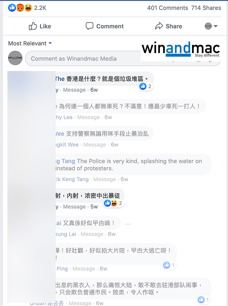 小編覺得,不想影響真fans心情,令他們花過多時間去作無謂的爭吵,故此決定見到五毛就封鎖。可是,這位行家提到黃絲抗爭者其實九成都不願意留言或俾反應,更不要講分享,要他們進入網站就更為困難。行家稱「無藍絲再加埋facebook的演算法,根本無辦法推得郁。」講得直接啲,就係與其封鎖五毛,倒不如等他們互相留多一些言,推高觸及率才有用。