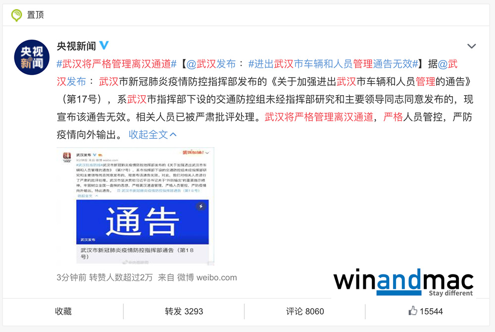 幸好的是,不足一日後有關政策即宣佈撤回。武漢發布在微博稱,原政策沒有研究和經領導同意,所以宣佈無效。有關人員已經被進行嚴肅批評處理。他們強調,會貫徹習近平精神,嚴防疫情向外輸出。