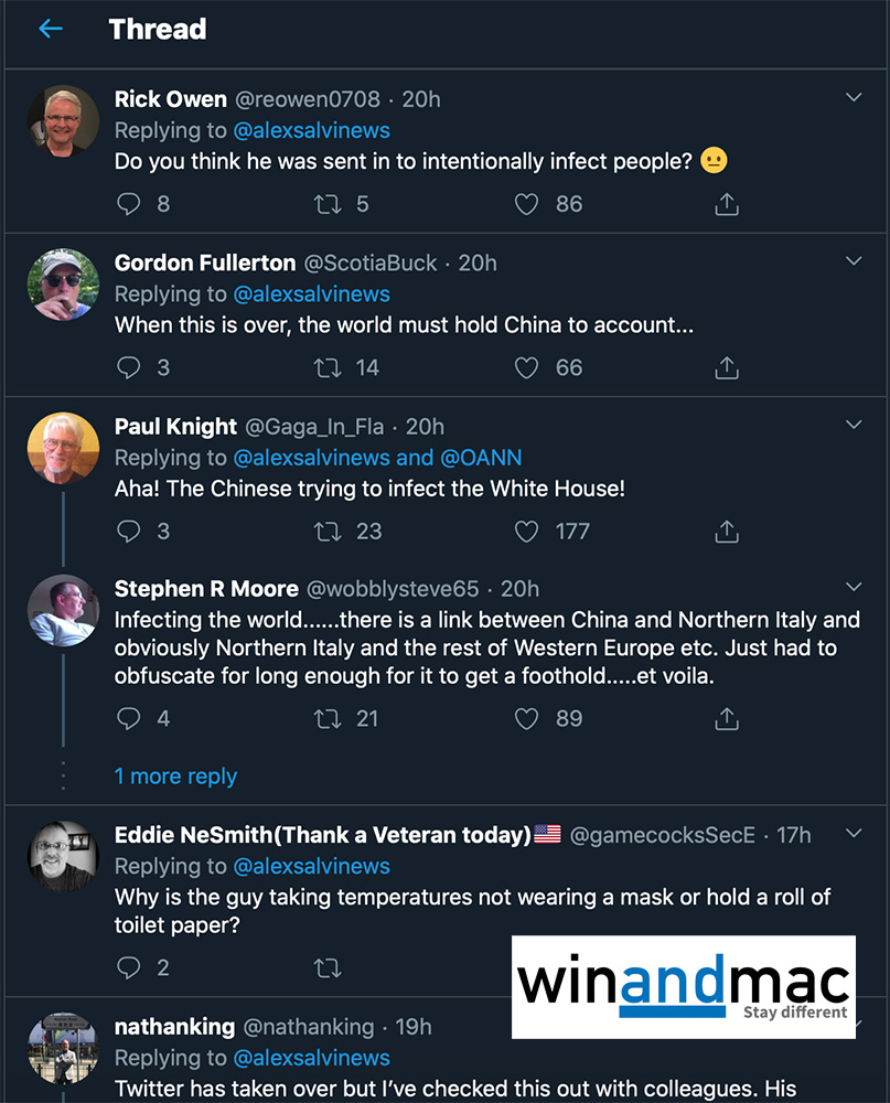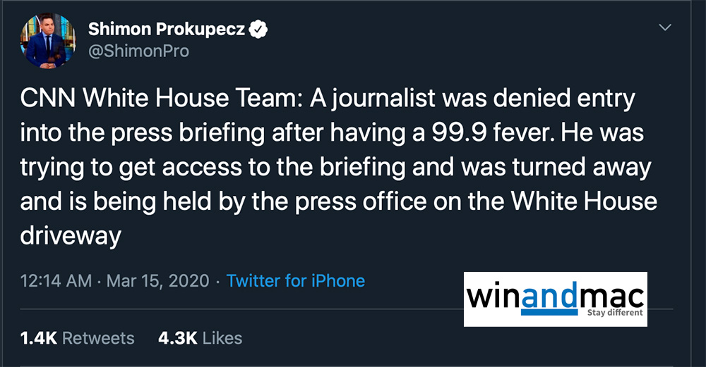 據稱白宮官員檢查該名男記者的體溫達三次,三次都是高燒的情況,故此被拒絕入場。最誇張的是,CGTN其後解釋稱因為有關記者跑去記者,才會引致溫度較高(註:正常情況沒有生病的人來說,跑步不會引致溫度高至發燒的程度)。事件傳出後,一眾老外都十分不滿,並有人懷疑有關央視記者是否專登,想害死他們的總統。