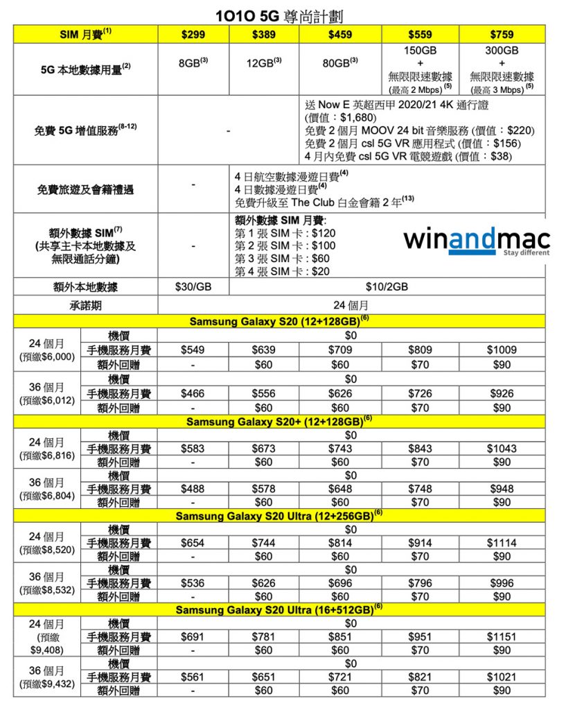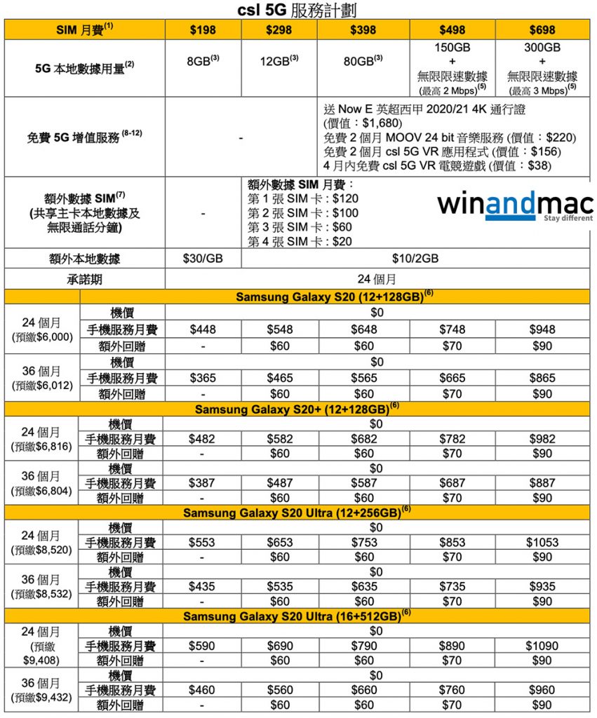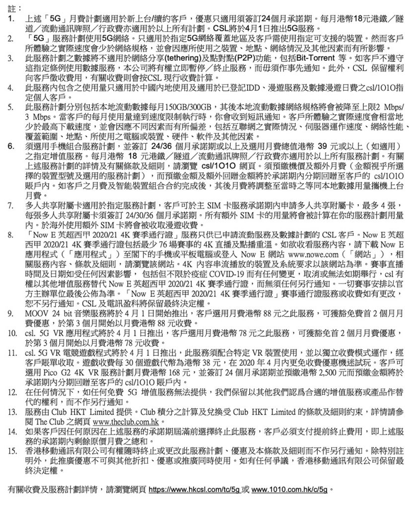 4月1日各個電訊商就會陸續啟動5G服務,撞正武漢肺炎,各電訊商似乎都無辦法要選擇低調發佈。香港電訊今日正式公佈旗下CSL和1010的5G月費計劃,最便宜的CSL HK$198計劃有8GB,最貴為1010HK$759計劃,數據用量有。另外,較昂貴的計劃都有一系列的增值服務增送,例如Now E英超西甲2020/21 4K通行證等。
