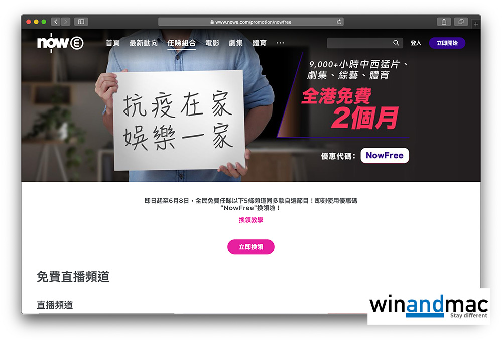 1. 去nowe.com後,按一下免費的橫額後就會看到此畫面。按立即換領後就可以繼續填寫電郵地址、密碼和電話號碼。