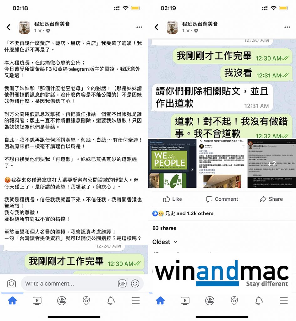 程班長原本稱不要再分什麼黃店、黑店、藍店、白店,於數小時前在Facebook Fan Page發表了多張圖片,記錄有關證據。他又忍不住問香港人仲有無本錢鬥來鬥去,但程班長也強調不會忘記初心,也不會被打倒。