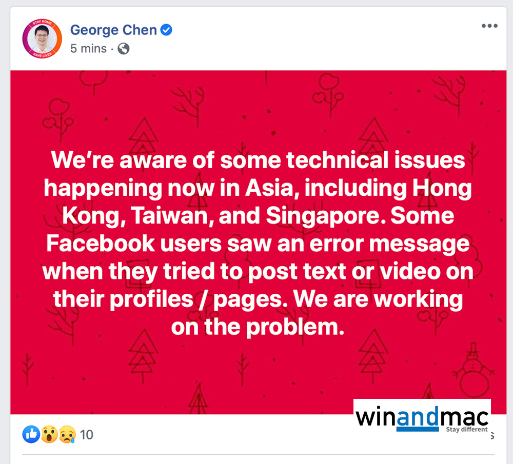負責中國香港市Facebook的George Chen接受查詢時表示,Facebook專頁無法發表內容只是技術問題,目前正影響亞洲區包括香港、台灣和新加坡。他在部份政治人物下留言指,與政治無關。