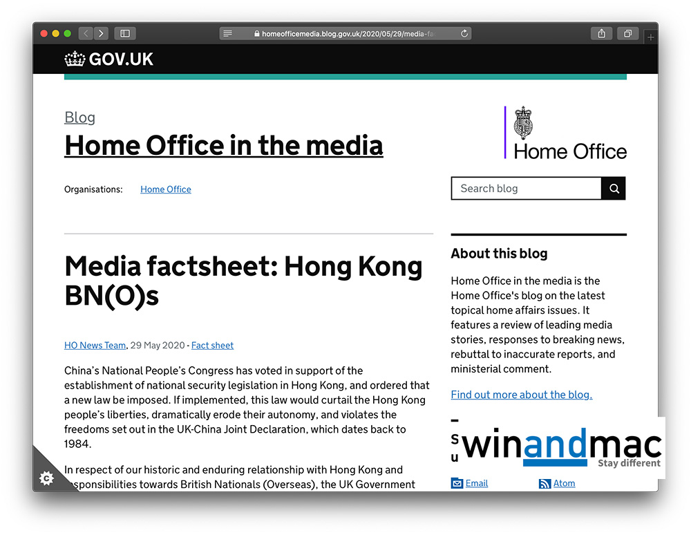 中國政府早前對英國外相就BNO一事,其實已經作出回應和遣責。不過,今次英國政府似乎真係唔多理,他們政府網站.gov.uk已有專頁,列出中國一旦通過和正式執行(follows through)香港國安法,將可能會允許(will explore options)擁有BNO的香港人留英一事。