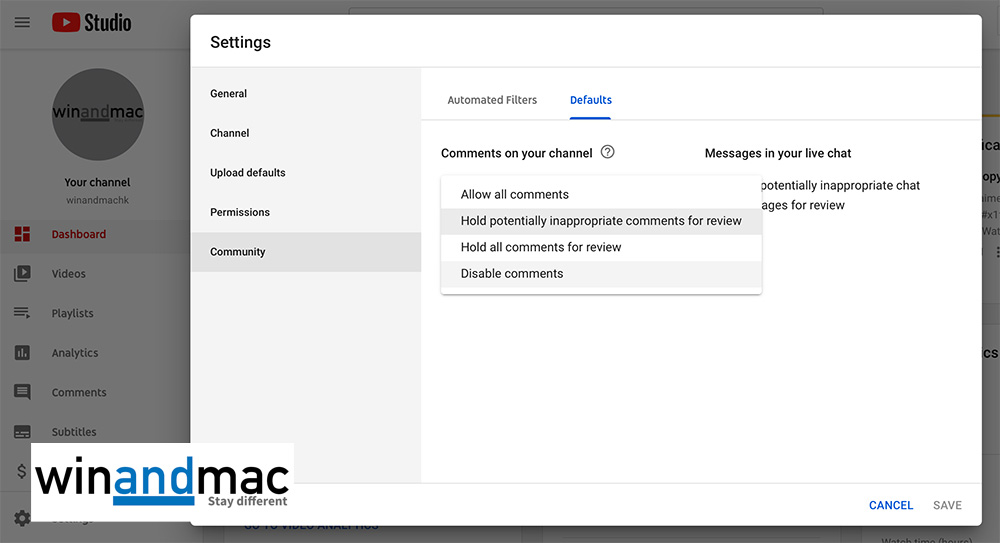 可惜的是,我們winandmac Media記者親身試過,就算在我們winandmac Media YouTube官方頻道設定中選擇允許所有留言,然後利用其他戶口登入,再在我們自己winandmac Media YouTube官方頻道影片留言「共匪」,仍然無法顯示,於一分鐘內自動刪除,似乎有講大話之嫌疑。