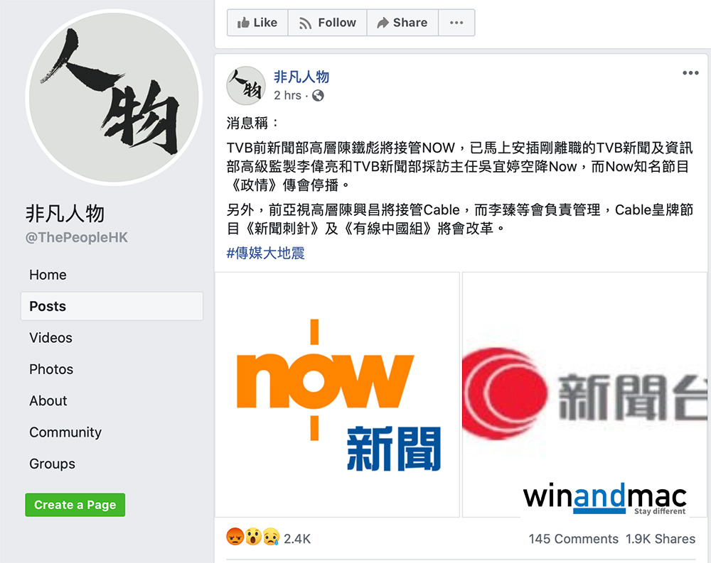 Facebook page非凡人物於數小時前發佈有關消息,其他傳媒如《立場新聞》都有類似的報道。非凡人物更提到有線新聞部情況,似乎也不是好得太多,由前亞視高層陳興昌接管,前now新聞台首席主播李臻管理,大家熟識的《新聞刺針》和《有線中國組》將會改革。
