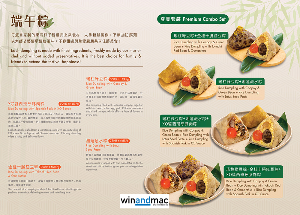 端午節快將來臨,按照傳統,不少人都會選擇食一食粽。東海飲食集團繼續堅持日日人手製作所有粽品,不添加防腐劑。今年除了傳統的瑤柱綠豆粽和湘蓮鹼水粽,還加入了XO醬西班牙豚肉粽和金桂十勝紅豆粽兩款創新選擇。
