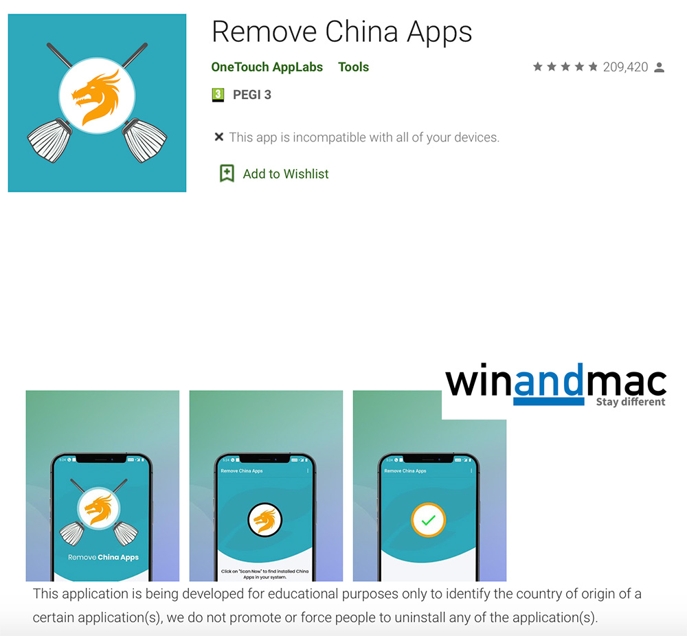 中國與印度近日因為邊界關係,令雙方氣氛持續緊張。另外,早前亦發生過一大堆印度人劣評中國抖音,令其跌至一星。最近,一間印度的OneTouch AppLabs製作了一款叫Remove China Apps工具,專門讓Android用家可以更輕鬆地找到系統中的中國製apps,方便地逐一移除。