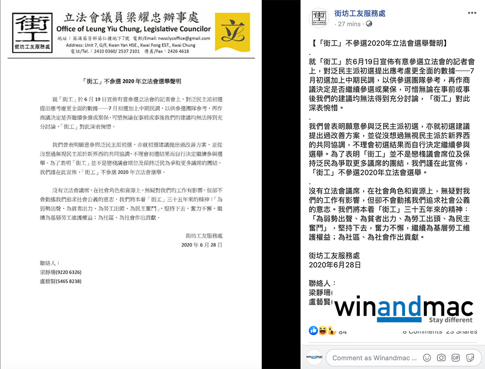 街工在聲明中強調,他們曾表明願意參與泛民主派初選,亦就初選建議提出過改善方案。他們沒有想過無視民主派於新界西的共同協調,不理會初選結果而自行決定繼續參與選舉。