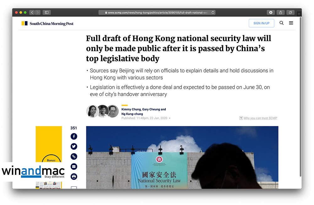 雖然外界仍有傳中國會手軟,但面對美國制裁沒有實際行動,再加上其他國家元首都係得個講字,中國政府似乎決定睬你都傻。南華早報今日再有報道,指港區國安法基本上已經是effectively done deal有效並圓滿完成,預計可在6月30日通過,慶祝七一回歸。