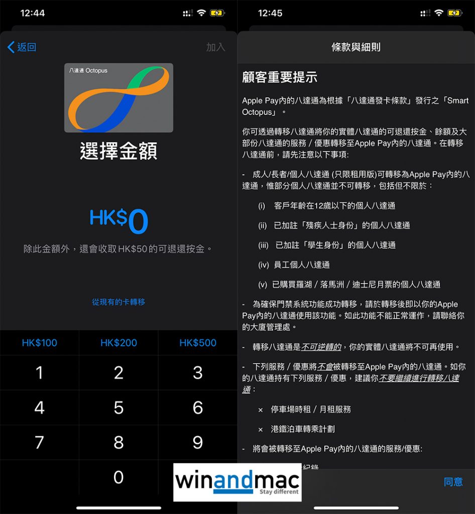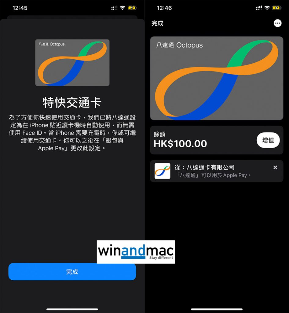 4. 與當年Samsung手機可以加入八達通情況類似,用家可以選擇啟動特快交通卡(上圖左),以便就算iPhone需要充電時,仍然有機會可以嘟到(當然若果真係無電得好勁咁無法⋯)。完成後,看到上圖右畫面時便可開始使用。