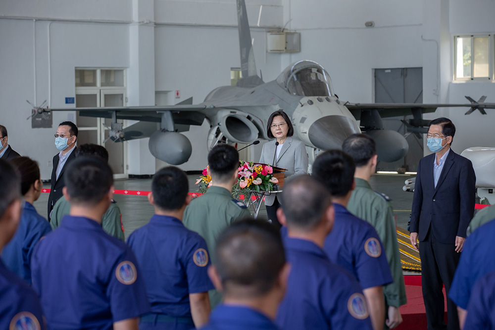 蔡英文稱她專程去澎湖,向駐守海峽第一線的陸海空三軍弟兄姊妹,表達肯定和感謝。她續指特別去探訪最前線、要最即時升空反應的空軍天駒部隊,飛行員向蔡英文稱可以將空防交給空軍!