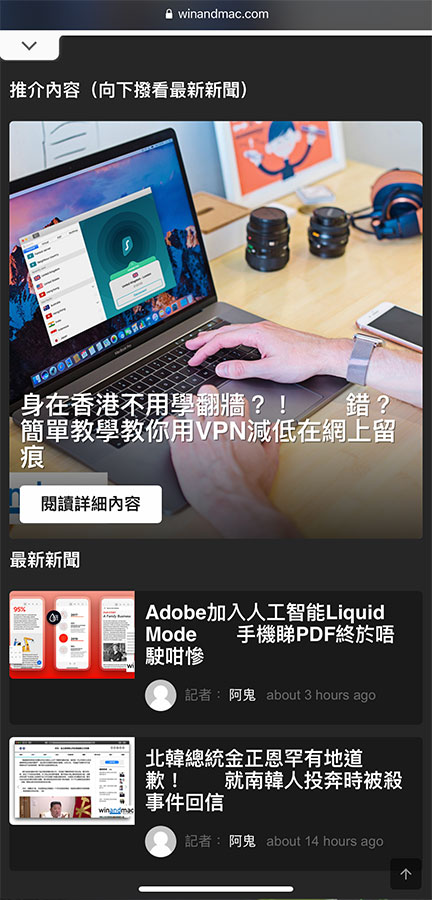 不得不提的是,在閱讀新聞時,大家也可以無限向下撥動,winandmac Media會自動載入與第一篇新聞相關的內容,讓大家可以無需返回主頁或類別逐一左按右按,即能繼續閱讀更多新聞內容,極度方便,直至睇完所有新聞內容為止。