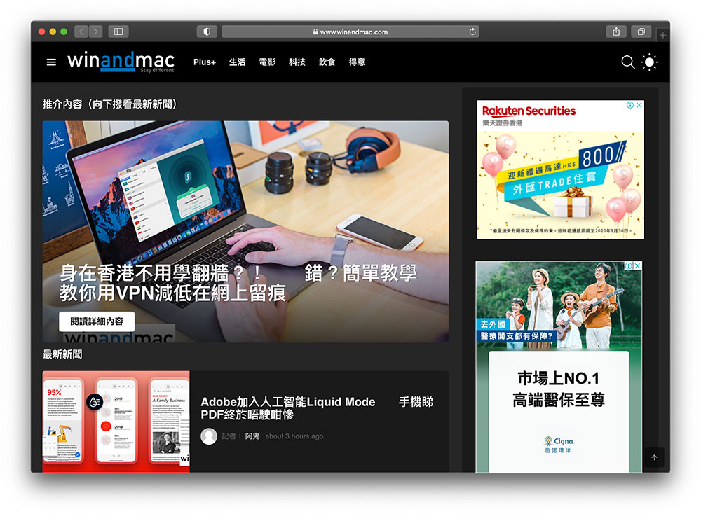 另外,我們也加入了暗黑模式Dark Mode。無論是任何平台,只要點按右上方的「月亮」圖示,即能轉到深色的暗黑模式。Dark Mode已成為網站、apps或平台的重要功能,winandmac Media為了讓大家睇文時,令眼睛可以舒服啲,也加入了Dark Mode。如有需要,隨時按右上方的「太陽」即能返回淺色模式。