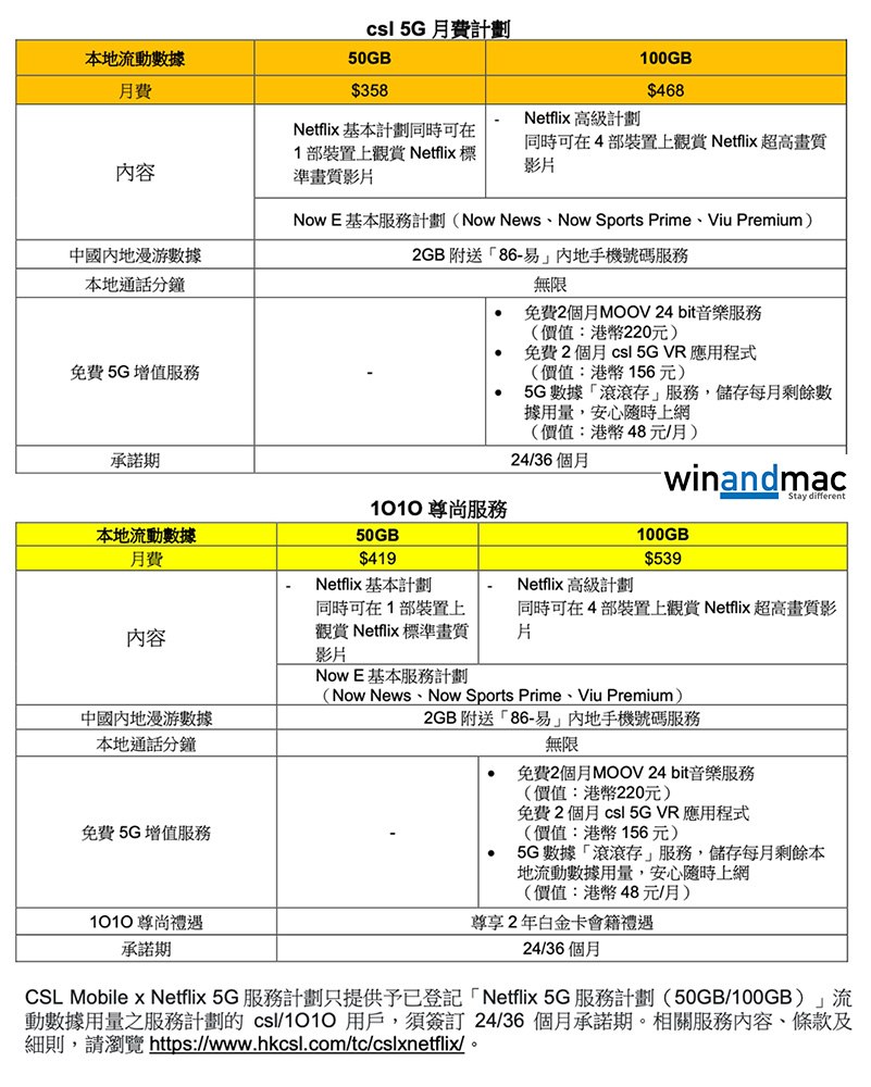 雖然說5G上網較快,我們早前測試中真的很爽,但快似乎未必是吸引用家的最重要因素,始終要用5G都有可能要換新機,又要選用新的上台計劃。CSL Mobile推出新的5G計劃,將於2020年10月23日就可以用到,當中提供Netflix服務。當中較平價的50GB 5G計劃,只有Netflix基本計劃附送,於一部裝置上使用服務。若貴一點的100GB 5G計劃,則有Netflix高級計劃,同時可在4部裝置上欣賞Netflix超高畫質影片,都有一定的吸引力。而較貴的100GB 5G計劃,更附送一些增值服務,例如5G數據滾存服務,每月用不完的數據可留下個月繼續用。