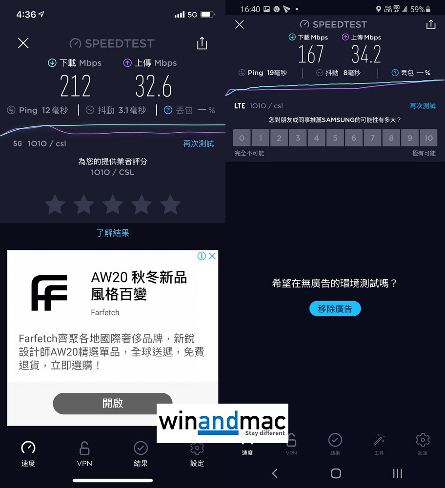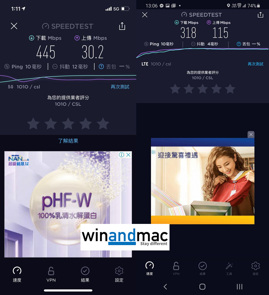 為了公平起見,測試都會使用同一張連接csl.網絡的nano SIM卡,亦會在相同地點,以Speedtest進行5G網絡速度測試。測試地點會在中環港交所、尖沙咀海港城及葵芳地鐵站內。
