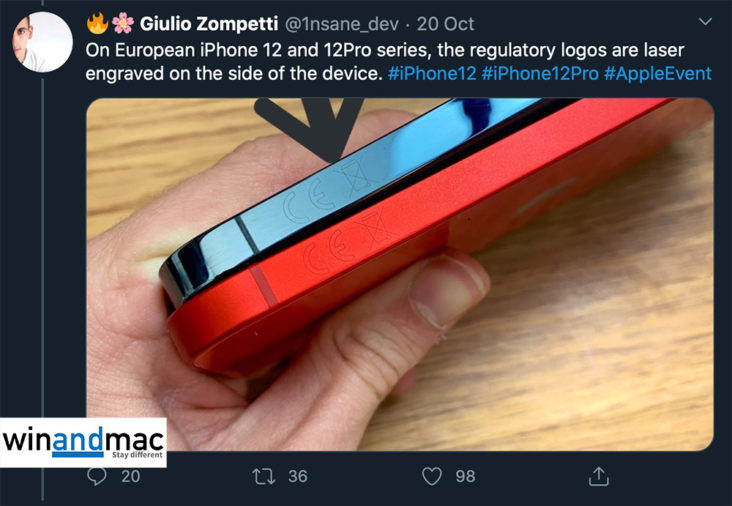 iPhone 12及iPhone 12 Pro今日正式開賣,全球都仍然有一定的支持者。不過,歐洲版的用戶或許要多加留意,因為他們的iPhone 12及iPhone 12 Pro與世界各地的版本有一個地方很不同,就是歐洲版的機邊會印有兩個法律與規範圖示(如上圖顯示)。美國版與世界不同地區的版本都沒有此圖示,主要是因為法律問題。