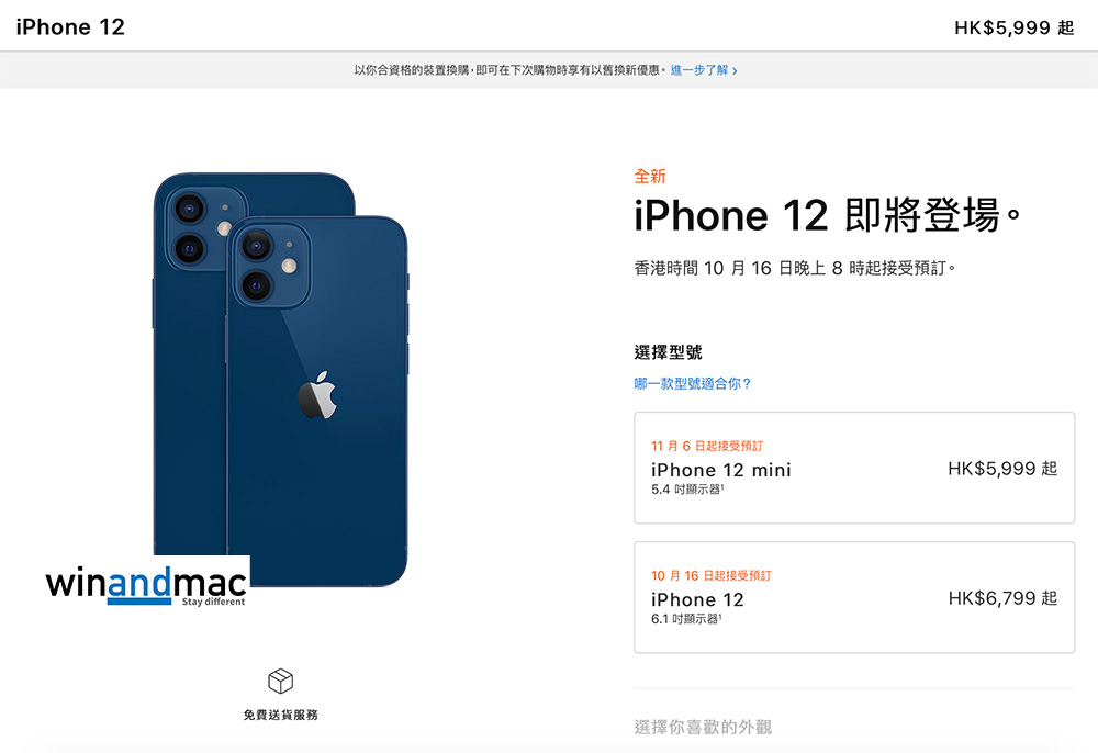 另外兩款則是相對較低階的為iPhone 12及iPhone 12 Mini,iPhone 12將由10月16日8:00pm起接受預訂,由HK$6799起跳,將由10月23日正式發售。而iPhone 12 Mini則由11月6日起接受預訂,由HK$5999起跳,將由11月13日正式發售。