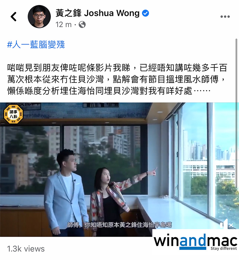 諸事八卦藍媒又講黃之鋒住貝沙灣  本人回應:講左千百萬次無住過