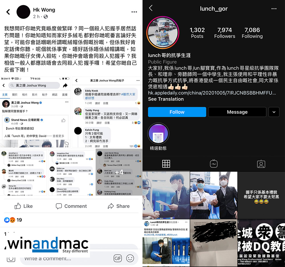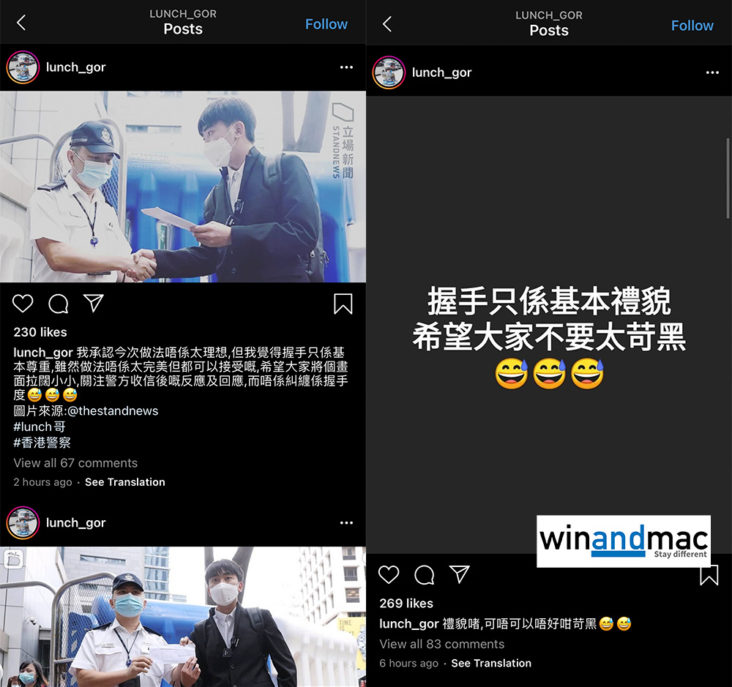 唯交請願信一刻,Lunch哥更與警察握手,網民對他質疑就更多,被指同殺人犯握手。Lunch哥本人則稱,握手只係基本尊重,並指做法唔係太完美但都可以接受,希望大家把畫面拉闊少少,關注警方收信後的回應,不要糾纏在握手一事上。