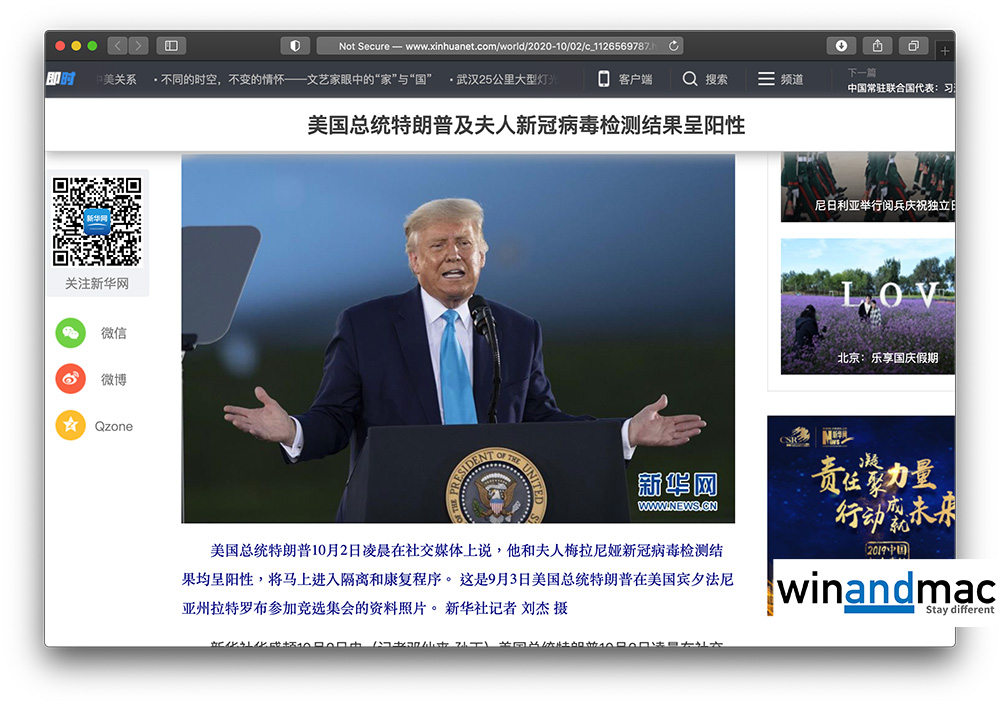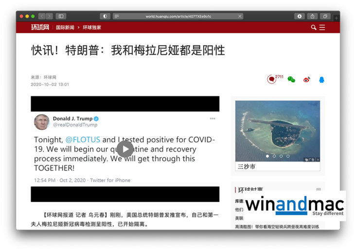 美國總統特朗普與第一夫人確診武漢肺炎後,很多人都想知道中國會如何反應。中國官媒都有報道消息,不過很多都沒有放在頭條或推介內容,而且也不像其他針對美國的新聞般帶批判性,反而只是簡單翻譯美國總統確診消息,或許是中國官媒中最為平衡最中立的報道。