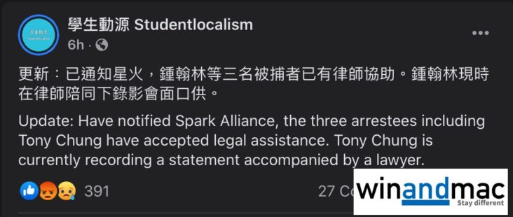 學生動源確認,鍾翰林等人再次被捕。據稱,前學生動源成員何忻諾於14:00田心警署報到期間被捕。另外,前學生動源成員陳渭賢亦於14:23屯門警署報到期間被捕。三名被捕者目前已有律師協助,鍾翰林現時在律師陪同下錄影會面口供。