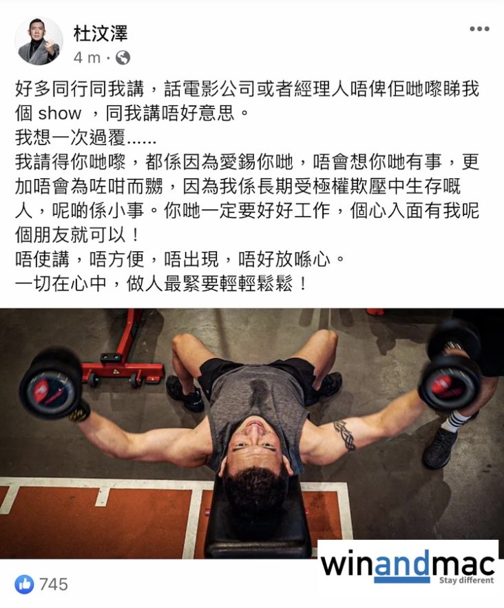 杜汶澤近排為咗《Stand Up Hong Kong 香港企硬》演出努力,除咗度稿之外,仲不停健身。他於Facebook稱,知道同行雖然收到他的邀請,但因為電影公司或經理人阻止,未必能夠出席。杜汶澤稱唔會嬲,因為他愛錫身邊同行,唔想佢地有事。他續稱,只要好好工作,心入面有杜汶澤就可以。他最後更稱「一切在心中,最緊要輕輕鬆鬆」。