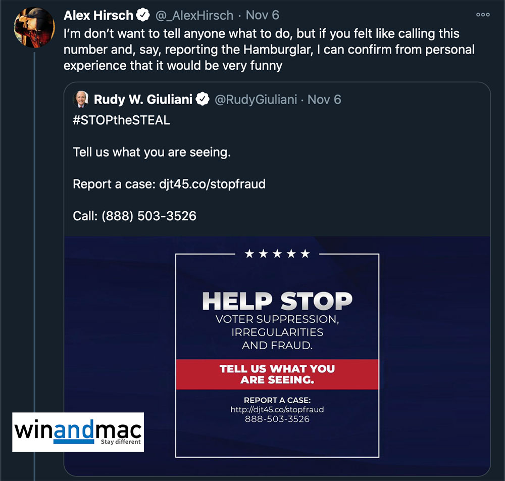 美國抖音TikTok用戶在總統大選前席,已經試過為了捉弄特朗普,在六月時特別預留大量造勢活動的座位,但不出席,令特朗普於該場的造勢晚會幾乎無人到場。現在特朗普成立美國總統大選舞弊舉辦熱線,抖音用戶又再一次玩嘢,不停狂打有關熱線,虛報和老作不真實的故事,令其他真正想舉報的人無法打入。