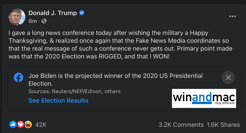 而整個傳媒會面中,多次重覆今次總統大選的問題,逐項提出各州對選舉結果的質疑,又稱有選舉舞弊。可惜的是,左派傳媒多數沒有提供完整報道。特朗普在晚上忍不住在社交網絡,再一次大罵傳媒,拒絕承認落敗。