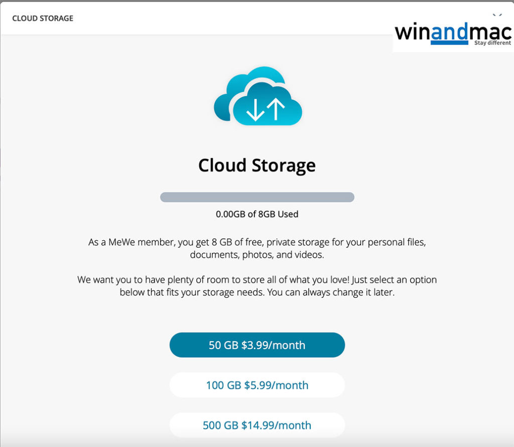 MeWe本身的收費版為US$4.99一個月,當中提供更多功能,包括上載空間大到有100GB,以及不同主題、無限視像通話和貼圖等。100GB總比8GB好,但是否已足夠又值得商榷。當然,你也是可以付錢再增加儲存容量,500GB的儲存空間為每個月US$14.99。