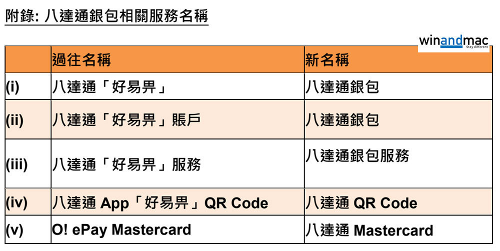 除了改名外,其八達通app新版亦已登場,介面與過往有明顯分別,分開了「八達通」與「銀包」一頁。不過,目前大家iPhone和Samsung手機上已經可以加入虛擬八達通,新介面雖然分清「八達通」與「銀包」,但是否每一個用戶都會習慣使用,就暫時不知道了。不得不提的一項新功能,就是用家目前可以透過自己的八達通銀包,選擇俾錢至朋友的八達通卡,選擇後朋友只要把其八達通卡在你支援的手機上拍一下,就可以成功過數給朋友。另外,若果你已經習慣了舊的O! ePay名字,以下這個列表清楚列出前後的改變: