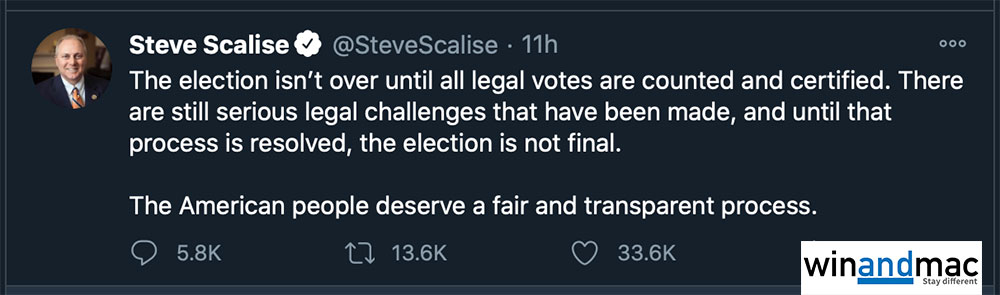 有外國傳媒報道,以及香港一些傳媒引述,美國共和黨人開始想與特朗普疏遠,甚至乎拒絕附和特朗普,因為他們都認為選舉投票無問題,應該承認落敗。事實上,在各國領袖都已經祝賀拜登做下屆總統的時候,仍然有大量共和黨人未有祝賀。曾多次幫忙香港人的共和黨Josh Hawley強調,誰人當選總統並不是由傳媒決定,而是由人民決定。直至所有合法的選票已被統計、重新完成點票、以及查清是否有選舉舞弊的情況後,我們將知道誰是勝利。