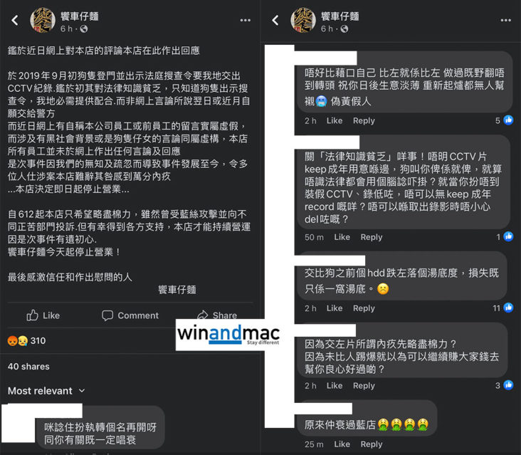 深水埗饗車仔麵被批評篤灰後停業  究竟有無俾錄影帶俾警方?