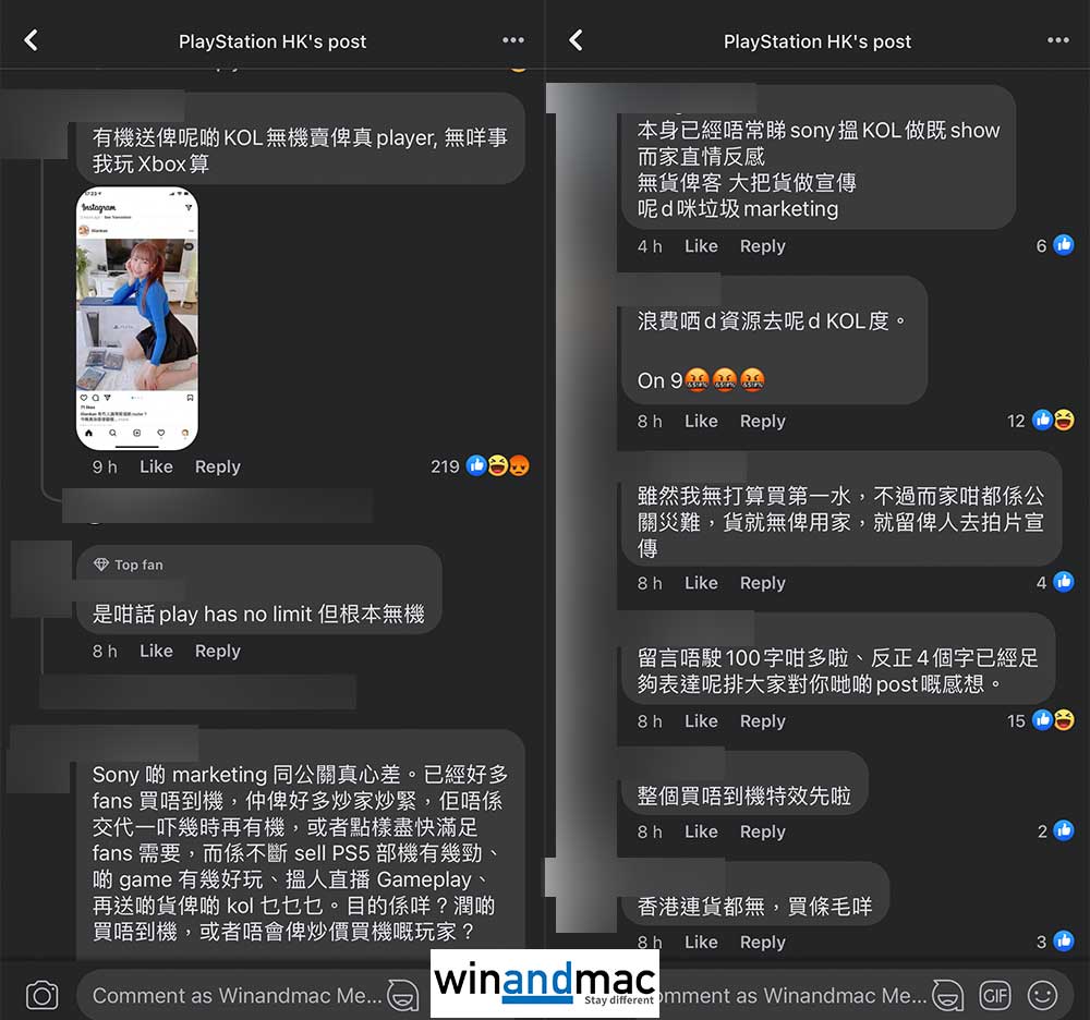 Sony PlayStation 5於日前正式推出,但香港仍然難以購買。不過,有一眾KOL和YouTuber都立即上網狂曬,拿著PlayStation 5宣傳。可惜的是,這似乎引起真玩家不滿。有不少網民不停追擊Sony PlayStation香港這幾個小時的文章,狂罵為什麼要搵一班唔打機的KOL做宣傳,反而真打機的主播就買唔到,更有人指出「繼續送機比D手制倒轉渣嘅KOL」,不滿之聲不絕。