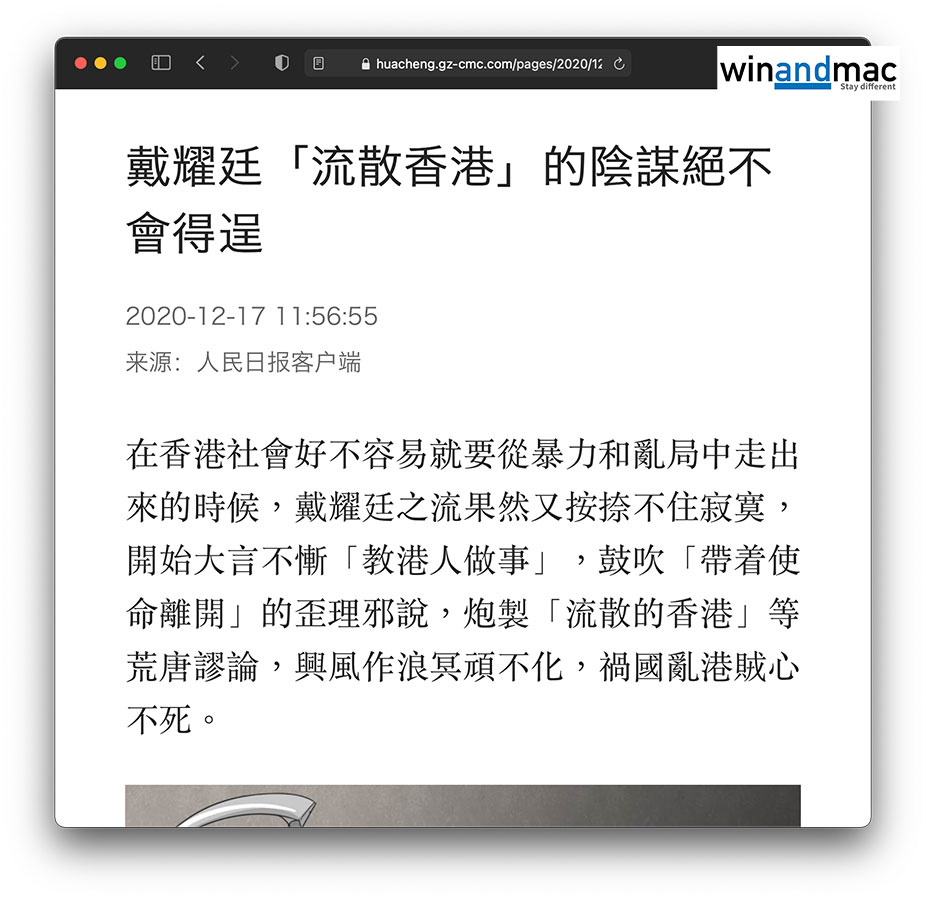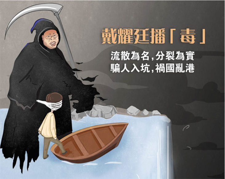 黨媒人民日報更製作相關圖片,大罵戴耀廷。其實戴也不是第一個被罵,各黨媒近日都出盡力罵少少唔順眼的人,郁少少就會說涉嫌犯國安法,像大家熟識的Donki就是其中一個例子。