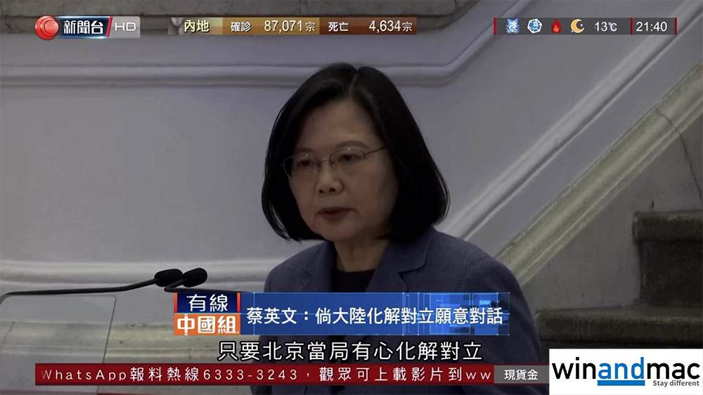 另外,值得留意的是,我們發覺有線中國組新班底,也特別把台灣新聞加進去,似乎想帶出「台灣是中國一部份」的訊息。除了製圖都特意把台灣變成紅色,當中台灣入口美國豬、蔡英文新年講話、兩岸倒數等都入了有線中國組節目中。當中提到台灣總統蔡英文講話時,更特意在結尾加入中國學者評論,評擊一下台獨的主張等。