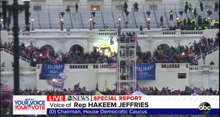 特朗普支持者與警察發生衝突,據當地傳媒報道,一名女性支持者衝入時被警方槍擊,後來送院後傷重死亡。國會內目前情況仍然混亂,有議事廳的玻璃被打碎。防暴警亦有出動,施放催淚彈驅趕。特朗普曾多次在社交網絡,指他們是遵守法律和規則的一派,需要和平非暴力。其後則再發表影片,指選舉被偷走,但希望支持者回家。