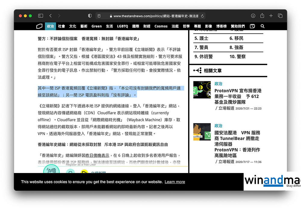 自從回歸以來,已經有傳言指香港遲早會有防火牆。國安法實施後,因為當中有條文的關係,加上近日有香港編年史短暫無法瀏覽事件,令人擔心是否真的開始封網。而日前亦有部份傳媒引述消息指,警首引國安法封鎖網站。唯每次相關新聞一出,就算本身支持抗爭運動的人,又或對政府不太信任的IT人,都會彈一句出黎話「唔識嘅嚇死,識IT嘅就笑死」。我們其實過往都有收過類似傳言,但難以證實,亦無乜證據,所以一直沒有報道。所以,我地winandmac Media記者決定訪問這些人的睇法,從另一個角度切入,看看為什麼他們會覺得今次疑似封網消息係一個「笑話」。