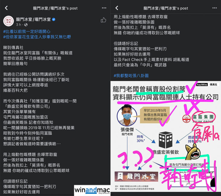 傳真社稱龍門冰室與富臨「有關係」  龍門回應:煽動性標題、胡亂報道