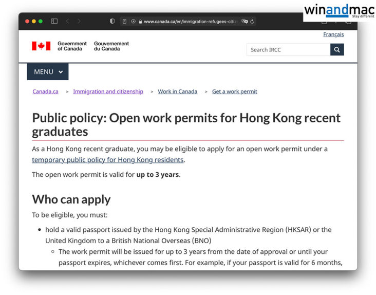 值得留意的是,由於是疫情關係,若果本身不在加拿大,要成功上機需要有Open Work Permit開放工作簽證的信件、已有獲得聘請的信件(job offer)、以及在抵達加拿大14天後即開始工作。身在香港或其他地方想在網上尋找工作簽證,建議可到加拿大求職網站包括Monster.ca、ca.indeed、LinkedIn及政府的Job Bank等。發送求職信時,建議可以向僱主定明你會申請今次提到的新工作簽證,僱主無需擔保或替你申請工作簽證,只需提供job offer信件即可。若果不行,可能要等到疫情後,但要留意疫情後再申請,是否還符合包括「5年內在指定的專上院校或學院畢業在內」等各項條件。