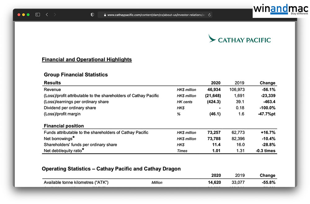 至於國泰旗下的香港快運於2020年錄得17.23億元虧損,快運自2019年被收購後仍未賺錢,而且愈蝕愈多。疫情下,導致快運於3月23日至8月1日暫停所有航班運作,並把快運中的10架飛機停泊於愛麗斯泉。國泰表示,目前尚不清楚疫情及其影響在未來幾個月將如何發展。