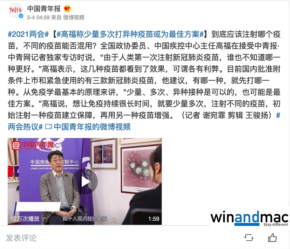 我們記者嘗試在大陸找回相關片段,但似乎已經被消失,大陸黨媒集中宣傳中國疫苗要打多過一次等其他「優勢」去做宣傳,目前網上流傳的僅有網民備份的版本: