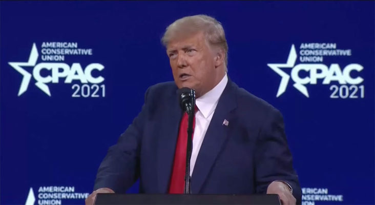 由於大部份社交網絡都封鎖了特朗普,曝光率大跌外,亦甚少發言。他於數小時出席Conservative Political Action Conference(CPAC),發表離任後首次重要的演說。一出場時就問大家有無掛住佢,並再一次提到最近一次的總統大選,認為民主黨搶走選舉。他更表示,或許會想再一次擊敗他們,用上「再」一字明顯不認為拜登在今屆總統大選中勝出,另一方面,亦似乎想暗示有可能再參加總統大選。