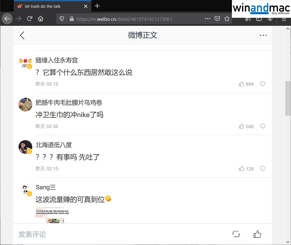 因新疆棉花事件引發大陸網民抵制事件,除了爆出其實大陸人身體很誠實外,還爆出中國五毛愛黨愛國人士,其實不太懂英文。有大陸網民發現, Nike在京東網站最新的廣告寫著「Let trash do the talk」,中文簡體則寫憑本事放狠話。由於最近事件雙方關係敏感,Nike廣告又有垃圾、憑本事、放狠話等字,即時引爆中國五毛玻璃心。