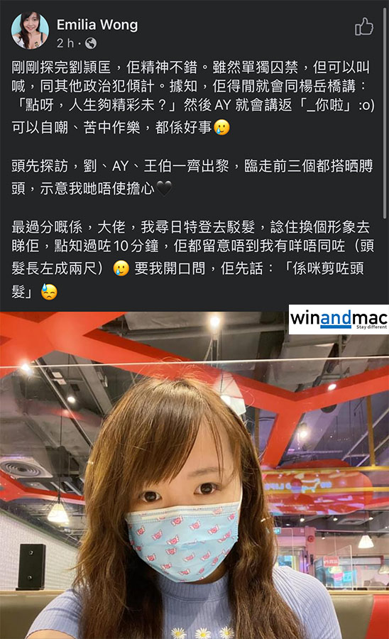 不論如何也好,劉頴匡女友Emilia Wong透露各泛民雖然被單獨囚禁,但仍可以叫喊互相聊天。劉頴匡得閒就會同楊岳橋講:「點呀,人生夠精彩未?」,楊岳橋就會以粗口回應。當然,Emilia Wong都知道他們其實只是互相自嘲,苦中作樂,都算是一件好事。Emilia Wong更透露探訪時三人搭膊頭出來,示意大家不用擔心。