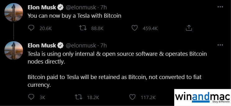 早前Tesla宣佈買了US$15億Bitcoin,以便在未來接受作為付款方式。這個未來還真的快實現到,因為Tesla CEO Elon Musk於數小時前宣佈,美國用戶現在正式可以用Bitcoin買車,其餘地區用戶則於稍後時間也可使用同樣的付款方式。