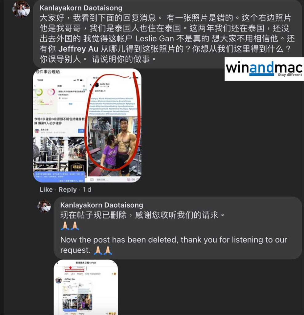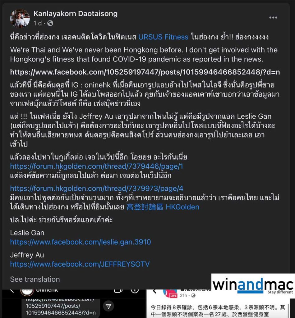 唯事實上,有關相片並不是在香港拍攝,而是在泰國拍攝。相關的人士亦是泰國人,他們的親人不斷在網上四傳留言,除了用泰文外,也有簡體中文解釋情況。他們提到已經兩年無離開泰國,與今次爆疫當然無關。