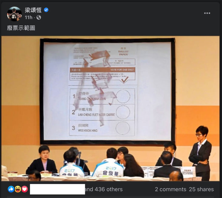 他指出有兩大作用,第一可以跟同路人展示大家的心還在的機會,「能力範圍許可下又何樂而不為?」。第二則是讓全世界看見香港人,他指出人關注的事情有限,他指出短時間内香港不太可能發起一波大型抗爭,若果投廢票低成本又可以比人見到,「其實無壞呀」。他其後更上載多一張當年新聞圖片,「示範」廢票的樣子。