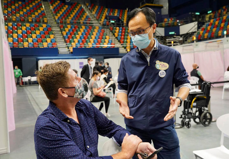 香港目前可選擇的接種疫苗包括中國科興,以及BioNTech與上海復星研發的復必泰。負責接種計劃的公務員事務局局長聶德權,於數小時前在社交網絡撰寫文章,提到復必泰疫苗再次開打。文中更引述一位在現場打針的澳洲人James,指James都多謝政府,感謝有關安排並過程順利。
